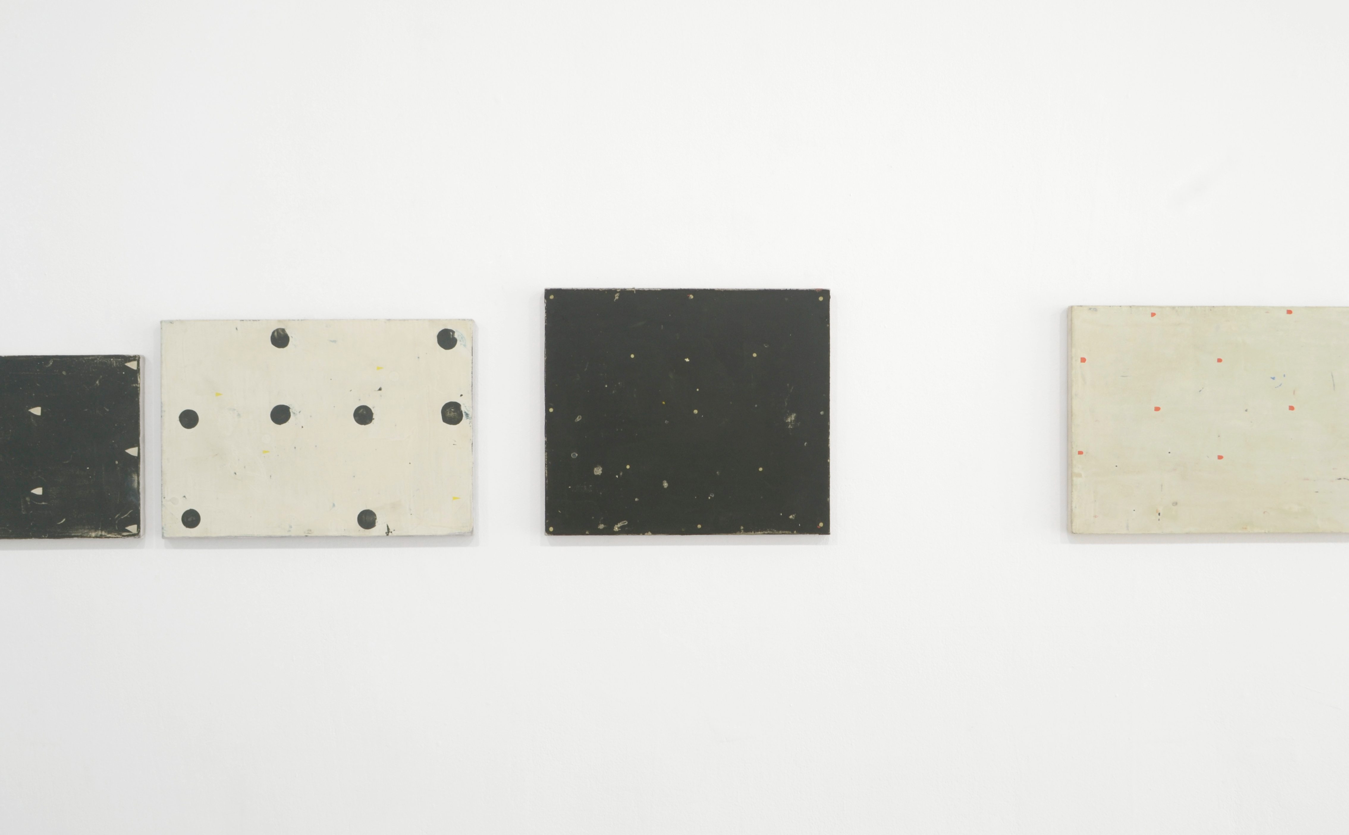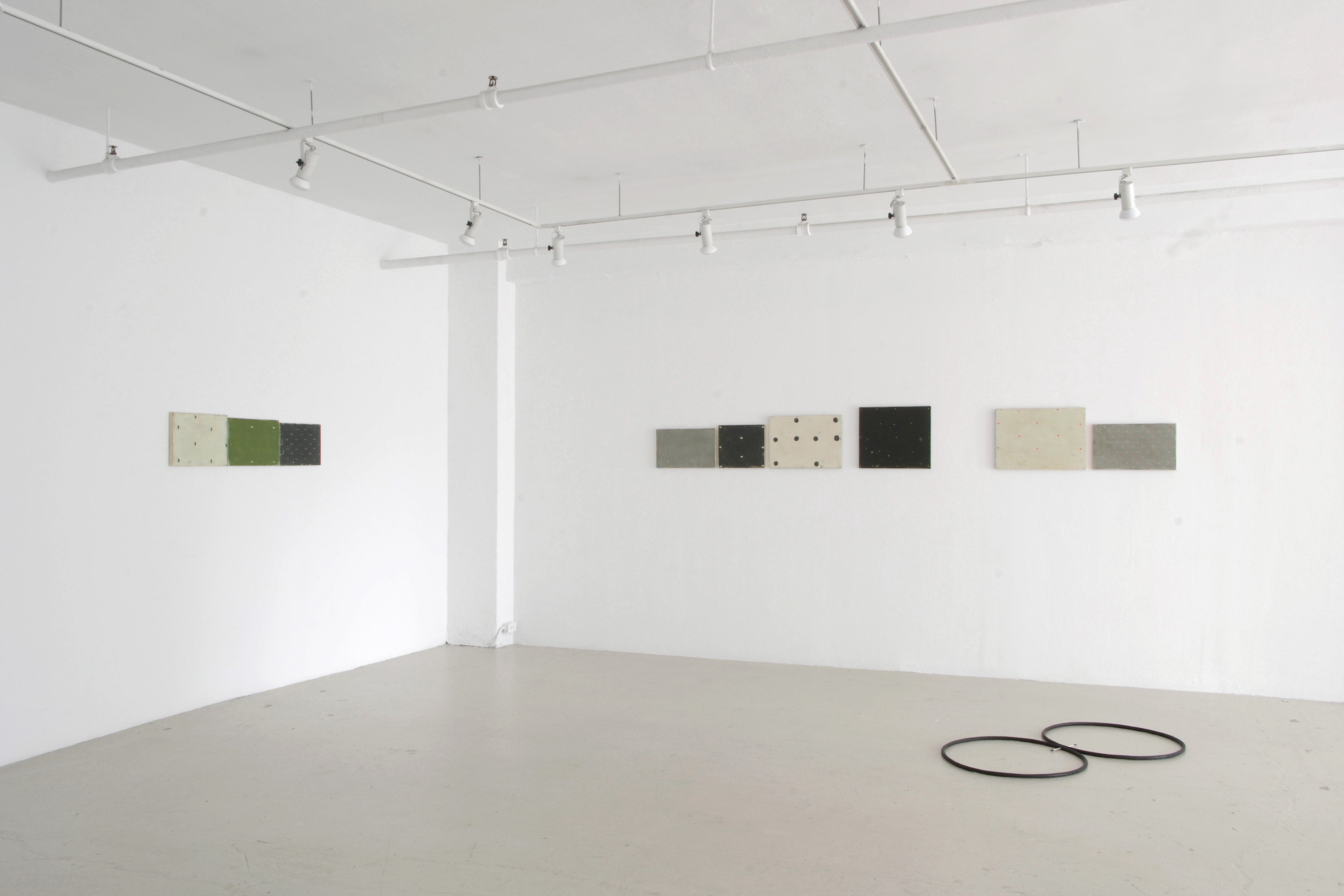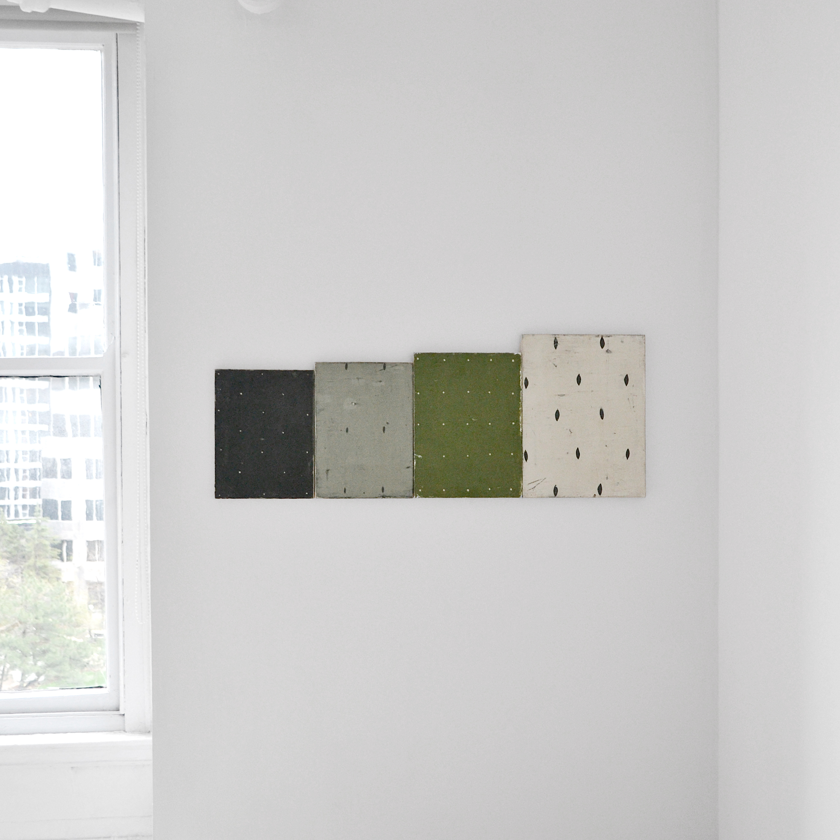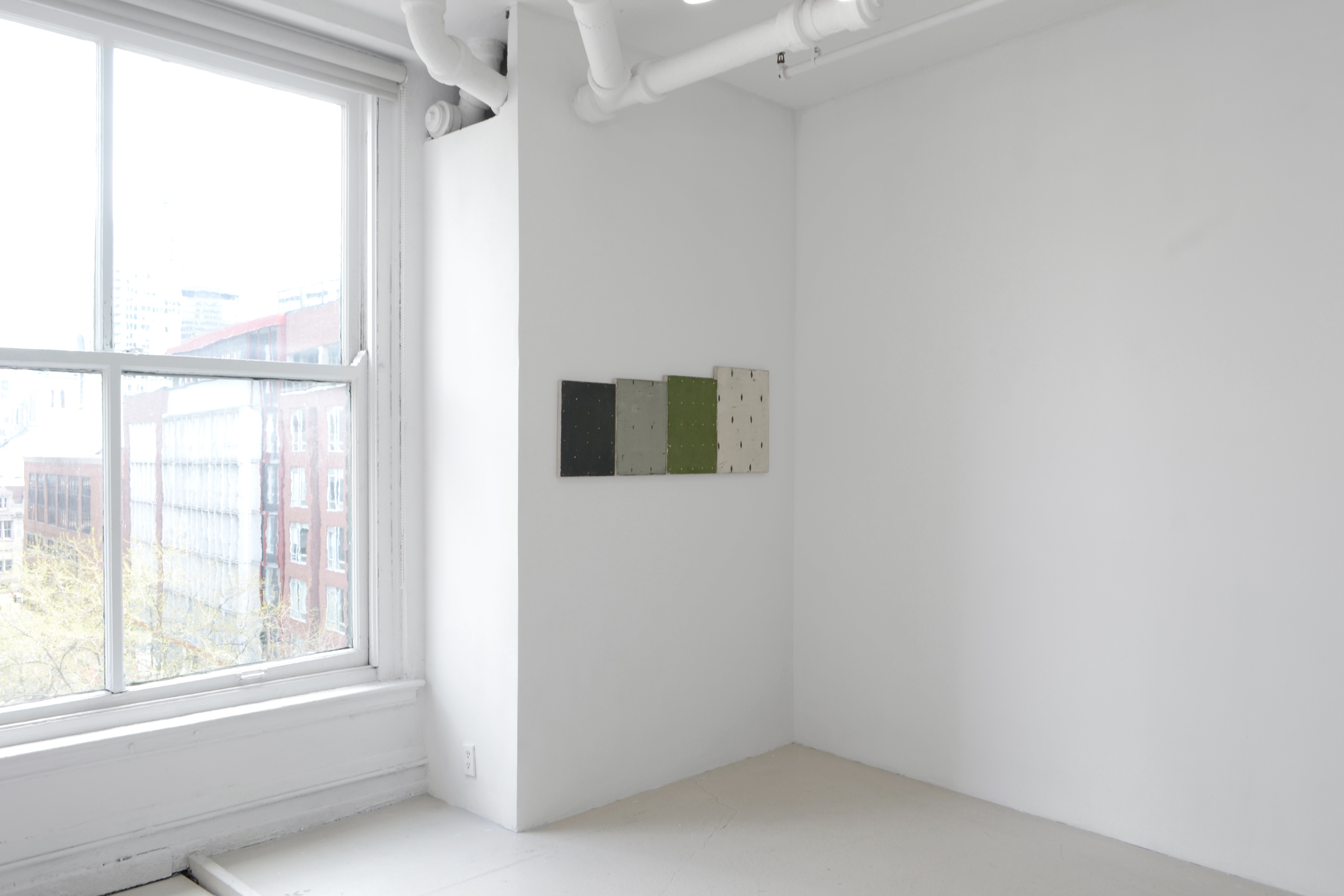 (schematic spectrum) 2016. graphite transfer of architectural drafting plan on paper, steel, magnets, (2) altered wooden frames, found Ryerson and Burnham Library pencil, and hardware