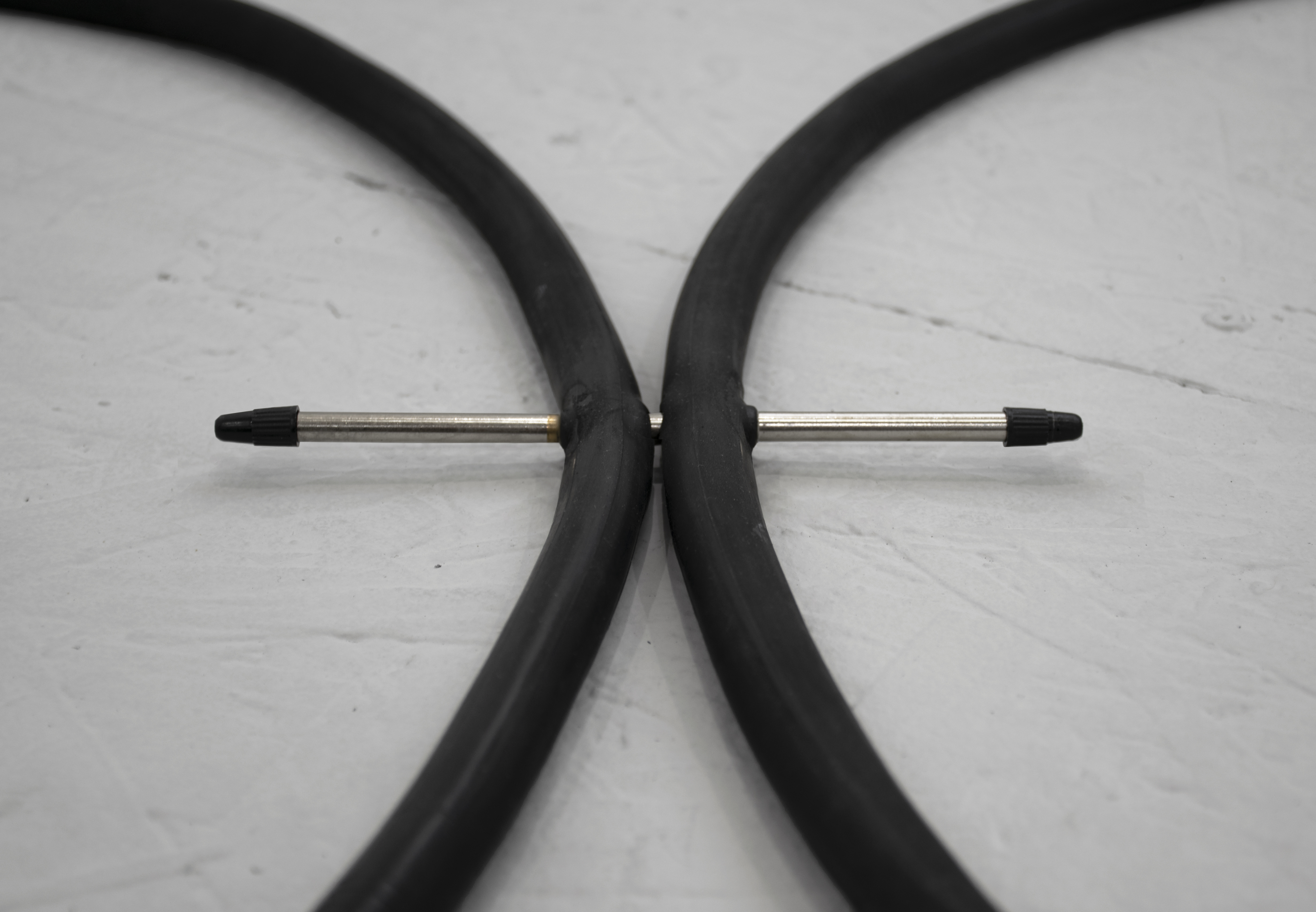 two connected ( 700 x 25 -30c ) inner bike tubes with 60mm Presta valves, and hardware